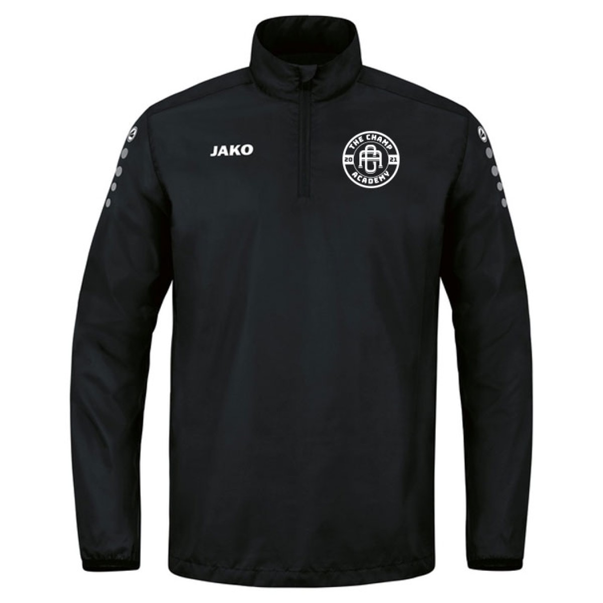 Dankzij het waterafstotende bovenmateriaal van de JAKO-rainzip TEAM met PU-coating rollen de regendruppels van de buitenkant van deze ziptop af. De taille- en mouwafsluitingen met elastische boord voorkomen dat er water in de jas loopt. De rainzip beschikt bovendien over een 1/4 rits vooraan en een opstaande kraag. Ideaal op regenachtige dagen.